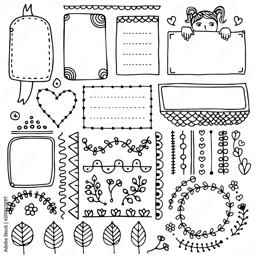Set Of Cute Hand Drawn Bullet Journal S Elements Isolated On White Background Collection Of Doodle Frames Borders Floral Elements Stock Vector Adobe Stock